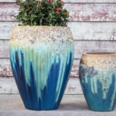 Ceramic Pot : CAPPL - Angkor/Marble Blue Color Big Size (Set of 2) SKU : CAPPL-3052 Size : Large : 46 cm x 46 cm x 61 cm Small : 32 cm x 32 cm x 43 cm Color : Angkor/Marble Green ( Please refer the 2