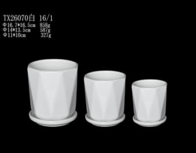 Ceramic Pot :TX26070 Size :17 cm, 14 cm, 11 cm (Set of 3) Colour : White Colors: White