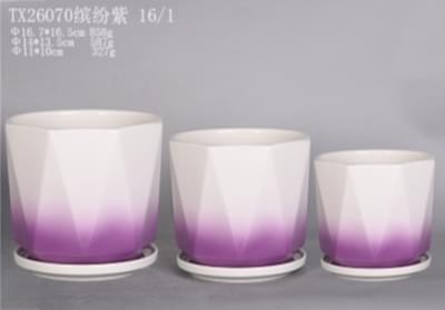 Ceramic Pot : TX26070 Size :17 cm, 14 cm, 11 cm (Set of 3) Colour : Mix colour ( White & )violet