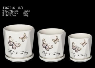 Ceramic Pot : TX67216 Size :20 cm, 17 cm, 14 cm (Set of 3) Color : White Colors: White
