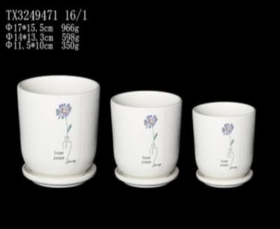 Ceramic Pot : TX3249471 Size : 17 cm, 14 cm, 11 cm (Set of 3) Colour : White Colors: White