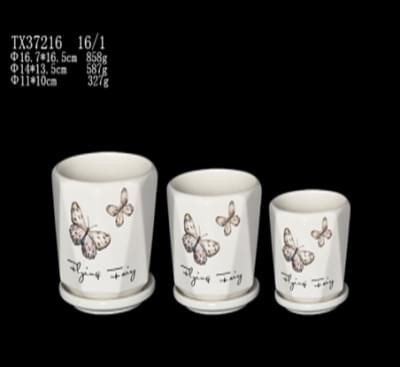 Ceramic Pot :TX37216 Size :17 cm, 14 cm, 11 cm (Set of 3) Colour : White Colors: White
